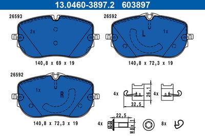 ATE 13.0460-3897.2 Bremsbelagsatz, Scheibenbremse