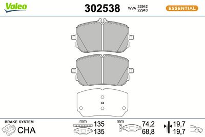VALEO 302538A Bremsbelagsatz, Scheibenbremse