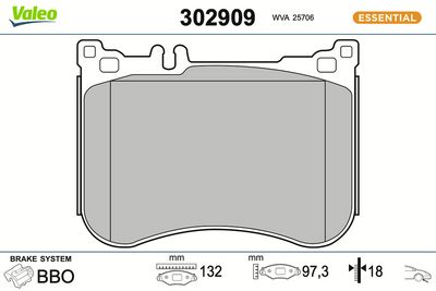 VALEO 302909 Bremsbelagsatz, Scheibenbremse