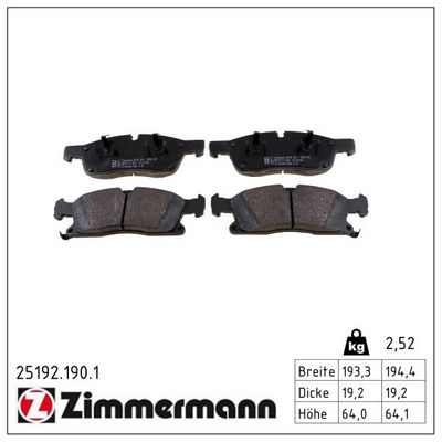ZIMMERMANN 25192.190.1 Bremsbelagsatz, Scheibenbremse