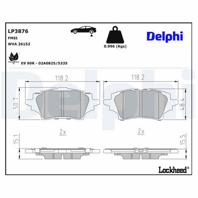 DELPHI LP3876 Bremsbelagsatz, Scheibenbremse