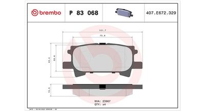 BREMBO P 83 068 Bremsbelagsatz, Scheibenbremse