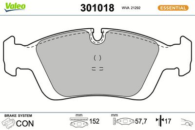 VALEO 301018 Bremsbelagsatz, Scheibenbremse