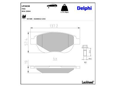 DELPHI LP3638 Bremsbelagsatz, Scheibenbremse