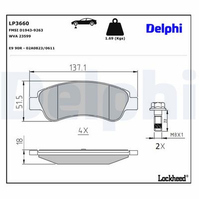 DELPHI LP3660 Bremsbelagsatz, Scheibenbremse
