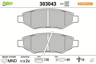 VALEO 303043 Bremsbelagsatz, Scheibenbremse