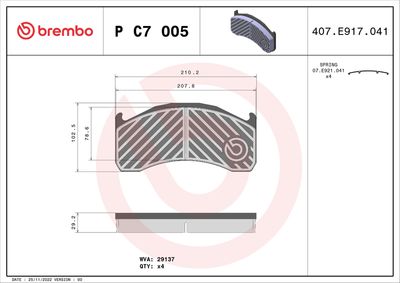BREMBO P C7 005 Bremsbelagsatz, Scheibenbremse