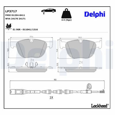 DELPHI LP3717 Bremsbelagsatz, Scheibenbremse