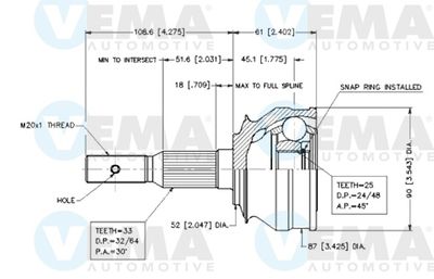 VEMA 18220 Gelenksatz, Antriebswelle