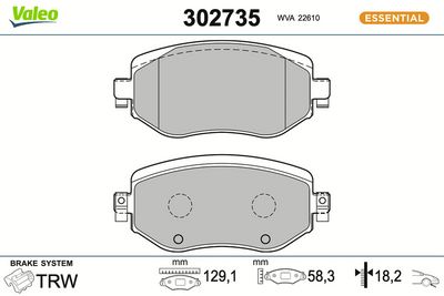 VALEO 302735A Bremsbelagsatz, Scheibenbremse