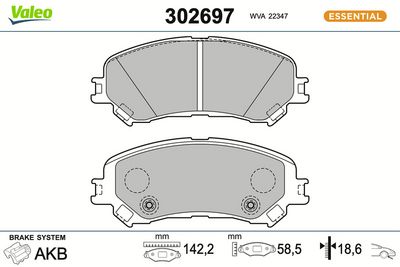VALEO 302697A Bremsbelagsatz, Scheibenbremse