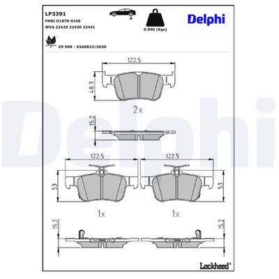 DELPHI LP3391 Bremsbelagsatz, Scheibenbremse