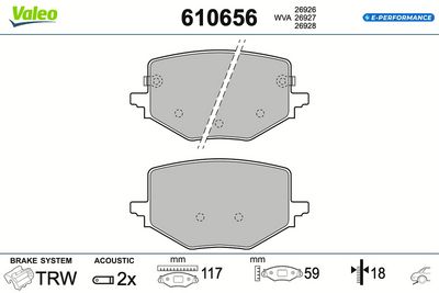 VALEO 610656 Bremsbelagsatz, Scheibenbremse