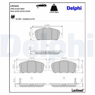 DELPHI LP3243 Bremsbelagsatz, Scheibenbremse