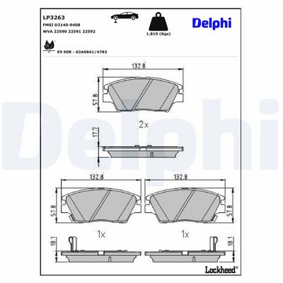 DELPHI LP3263 Bremsbelagsatz, Scheibenbremse