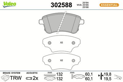 VALEO 302588A Bremsbelagsatz, Scheibenbremse