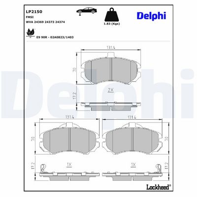 DELPHI LP2150 Bremsbelagsatz, Scheibenbremse