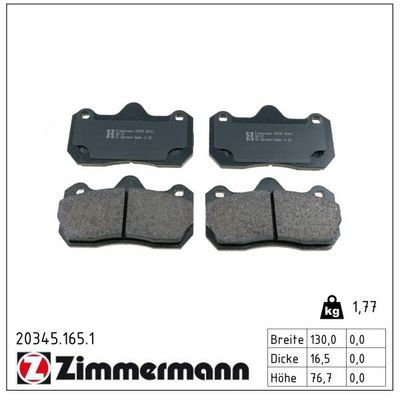 ZIMMERMANN 20345.165.1 Bremsbelagsatz, Scheibenbremse