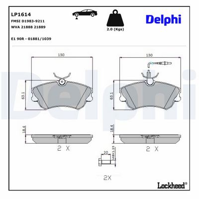 DELPHI LP1614 Bremsbelagsatz, Scheibenbremse