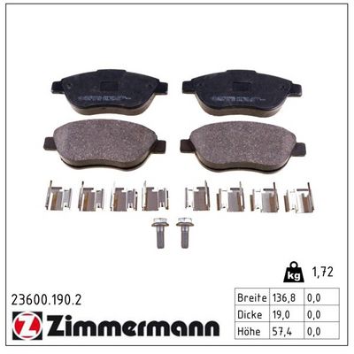 ZIMMERMANN 23600.190.2 Bremsbelagsatz, Scheibenbremse