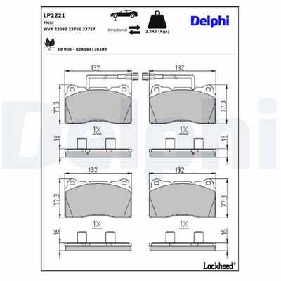 DELPHI LP2221 Bremsbelagsatz, Scheibenbremse