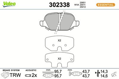 VALEO 302338A Bremsbelagsatz, Scheibenbremse