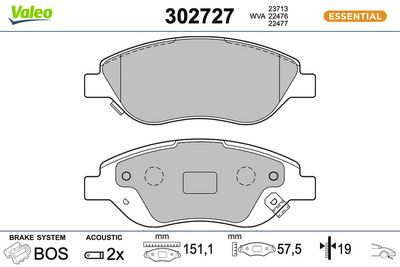 VALEO 302727A Bremsbelagsatz, Scheibenbremse