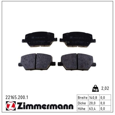 ZIMMERMANN 22165.200.2 Bremsbelagsatz, Scheibenbremse