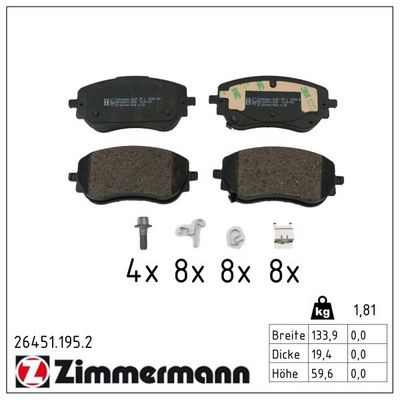 ZIMMERMANN 26451.195.2 Bremsbelagsatz, Scheibenbremse