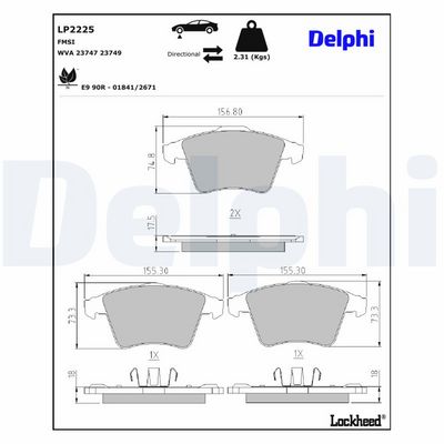 DELPHI LP2225 Bremsbelagsatz, Scheibenbremse