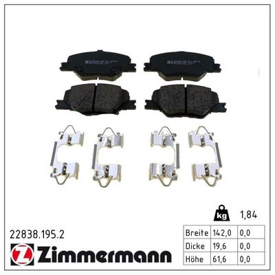 ZIMMERMANN 22838.195.2 Bremsbelagsatz, Scheibenbremse