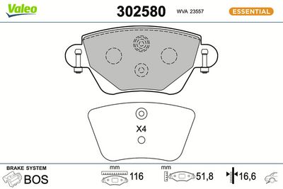 VALEO 302580 Bremsbelagsatz, Scheibenbremse