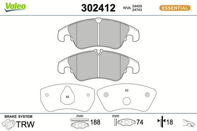 VALEO 302412 Bremsbelagsatz, Scheibenbremse