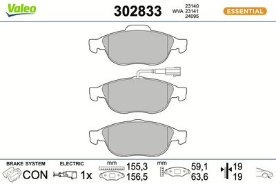VALEO 302833 Bremsbelagsatz, Scheibenbremse