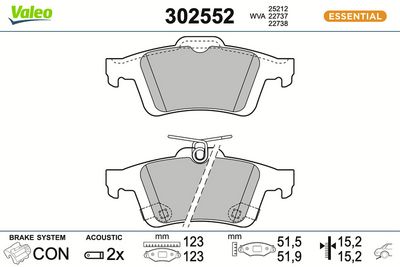 VALEO 302552 Bremsbelagsatz, Scheibenbremse