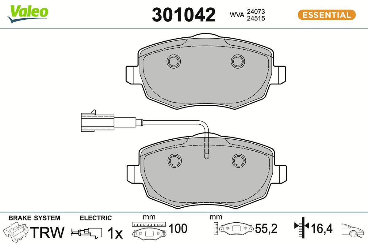VALEO Bremsbelagsatz, Scheibenbremse 301042 ESSENTIAL