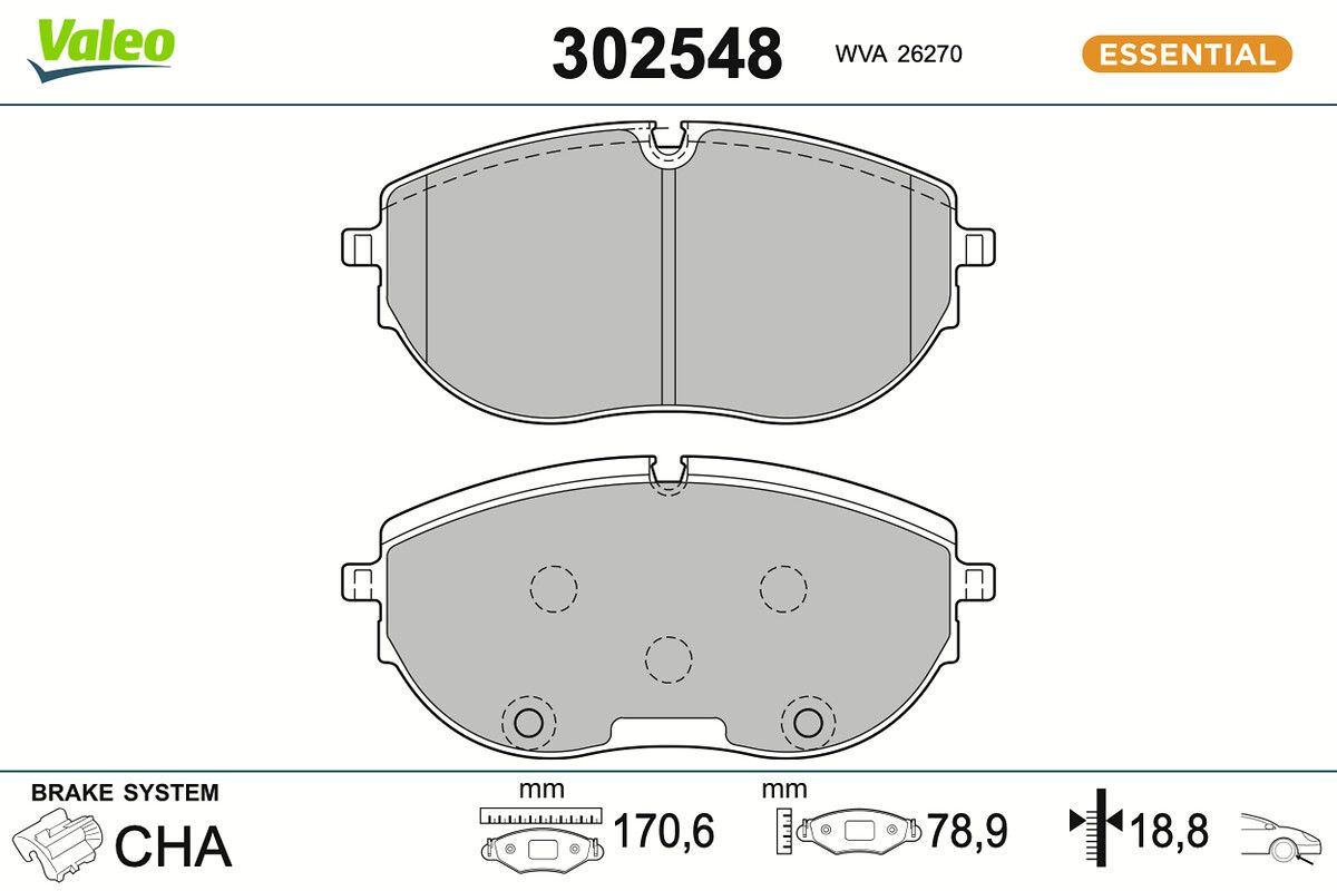 VALEO Bremsbelagsatz, Scheibenbremse 302548 ESSENTIAL