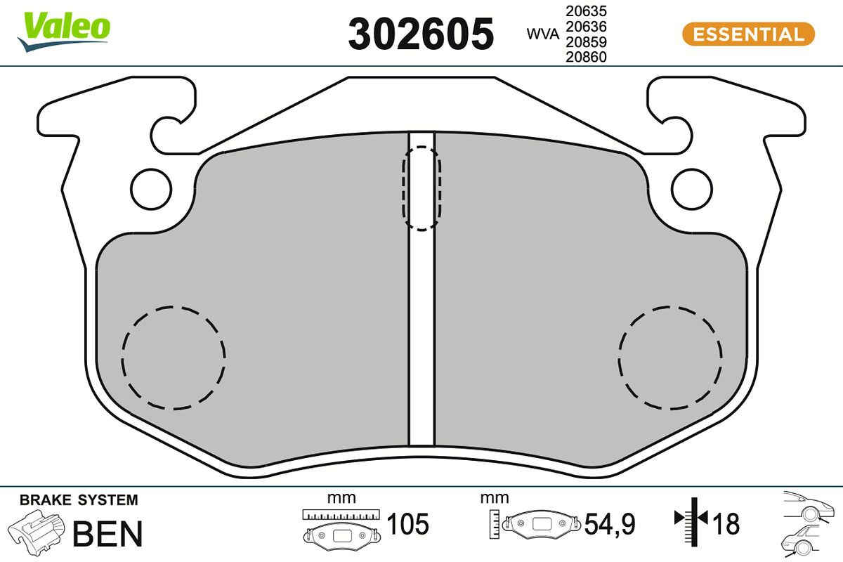 VALEO Bremsbelagsatz, Scheibenbremse 302605 ESSENTIAL