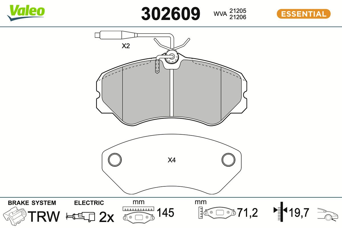 VALEO Bremsbelagsatz, Scheibenbremse 302609 ESSENTIAL