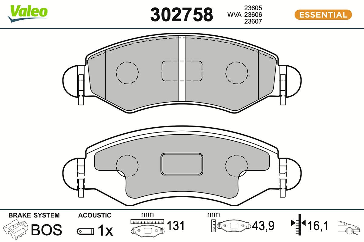 VALEO Bremsbelagsatz, Scheibenbremse 302758 ESSENTIAL