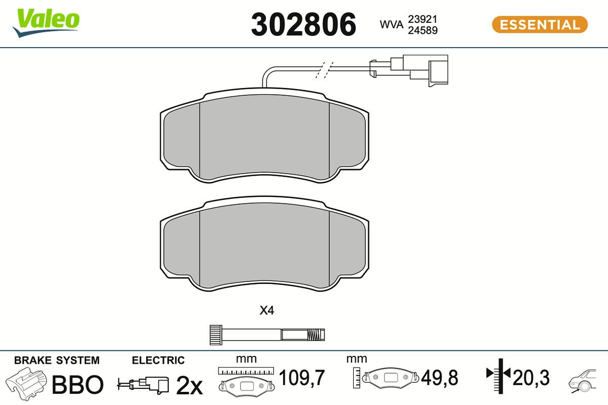 VALEO Bremsbelagsatz, Scheibenbremse 302806 ESSENTIAL