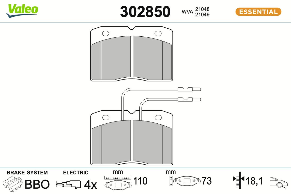 VALEO Bremsbelagsatz, Scheibenbremse 302850 ESSENTIAL