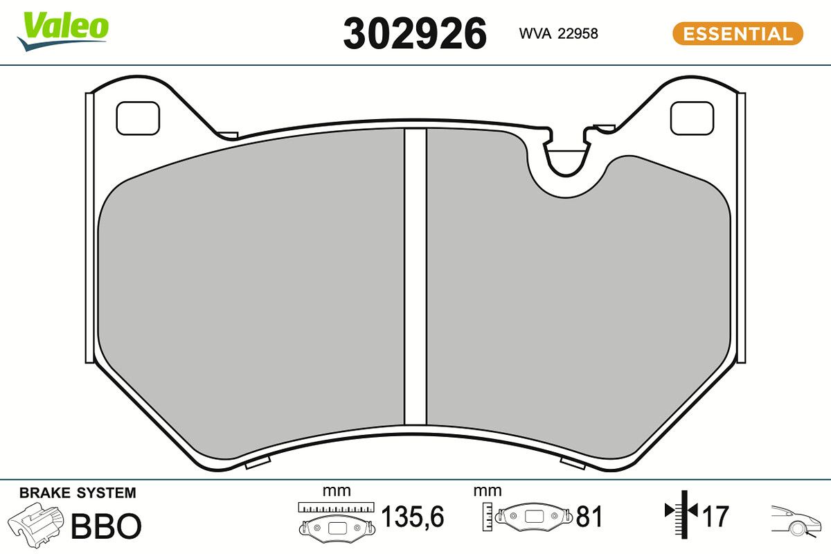 VALEO Bremsbelagsatz, Scheibenbremse 302926 ESSENTIAL