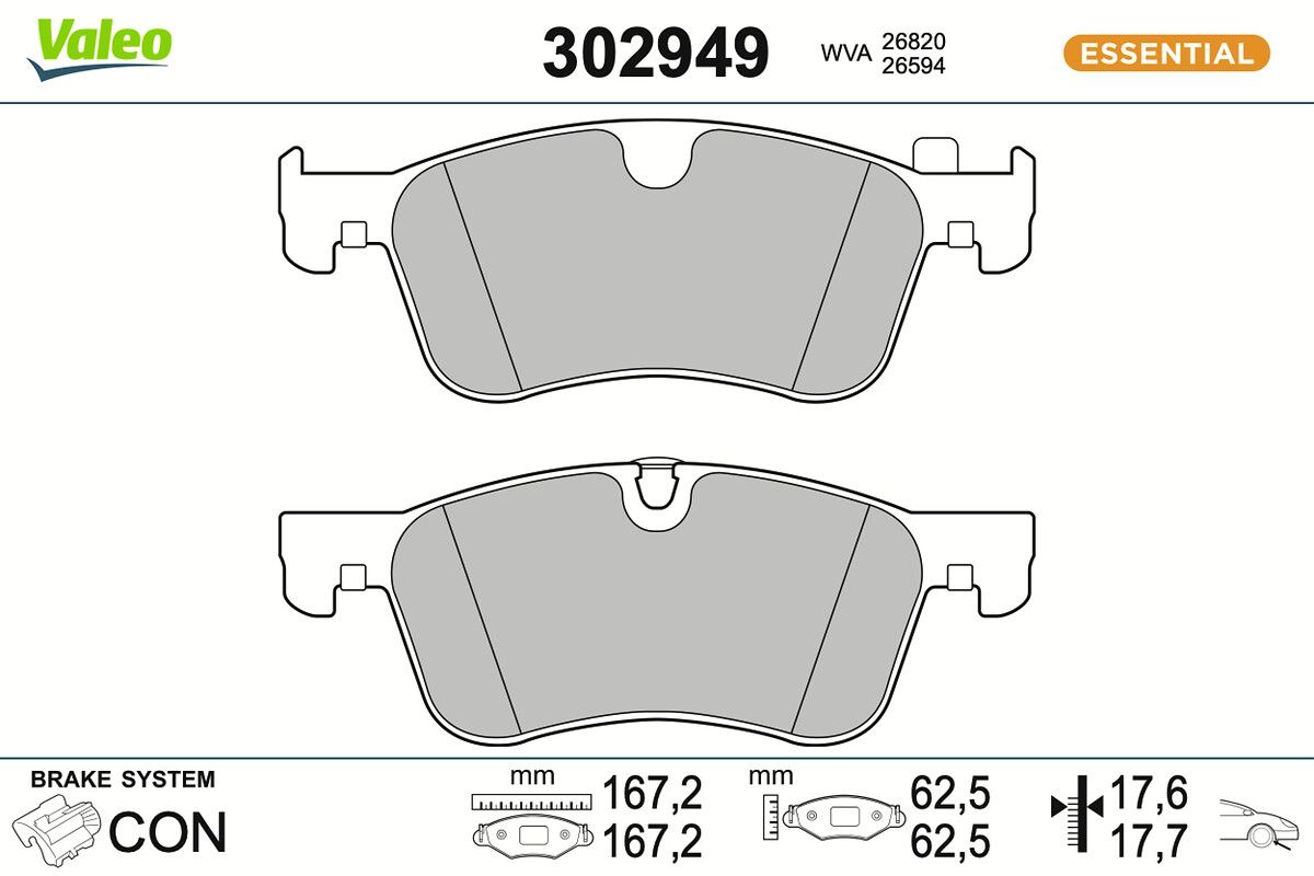 VALEO Bremsbelagsatz, Scheibenbremse 302949 ESSENTIAL