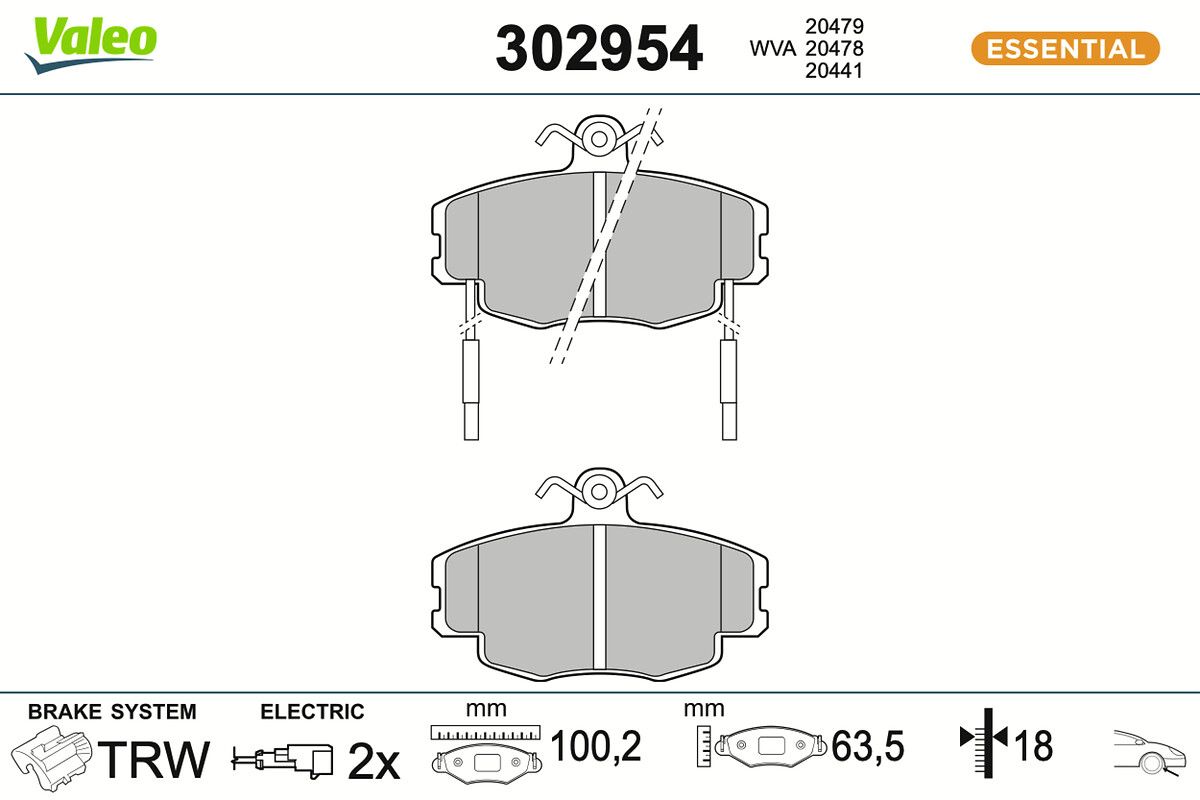 VALEO Bremsbelagsatz, Scheibenbremse 302954 ESSENTIAL