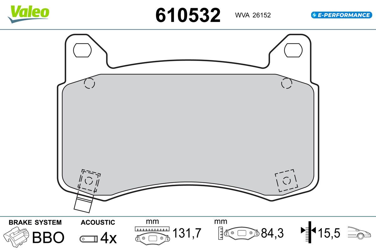 VALEO Bremsbelagsatz, Scheibenbremse 610532 E-PERFORMANCE