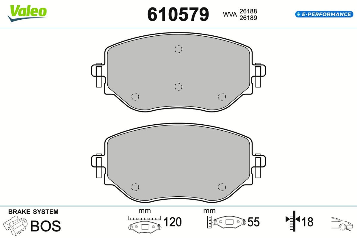 VALEO Bremsbelagsatz, Scheibenbremse 610579 E-PERFORMANCE