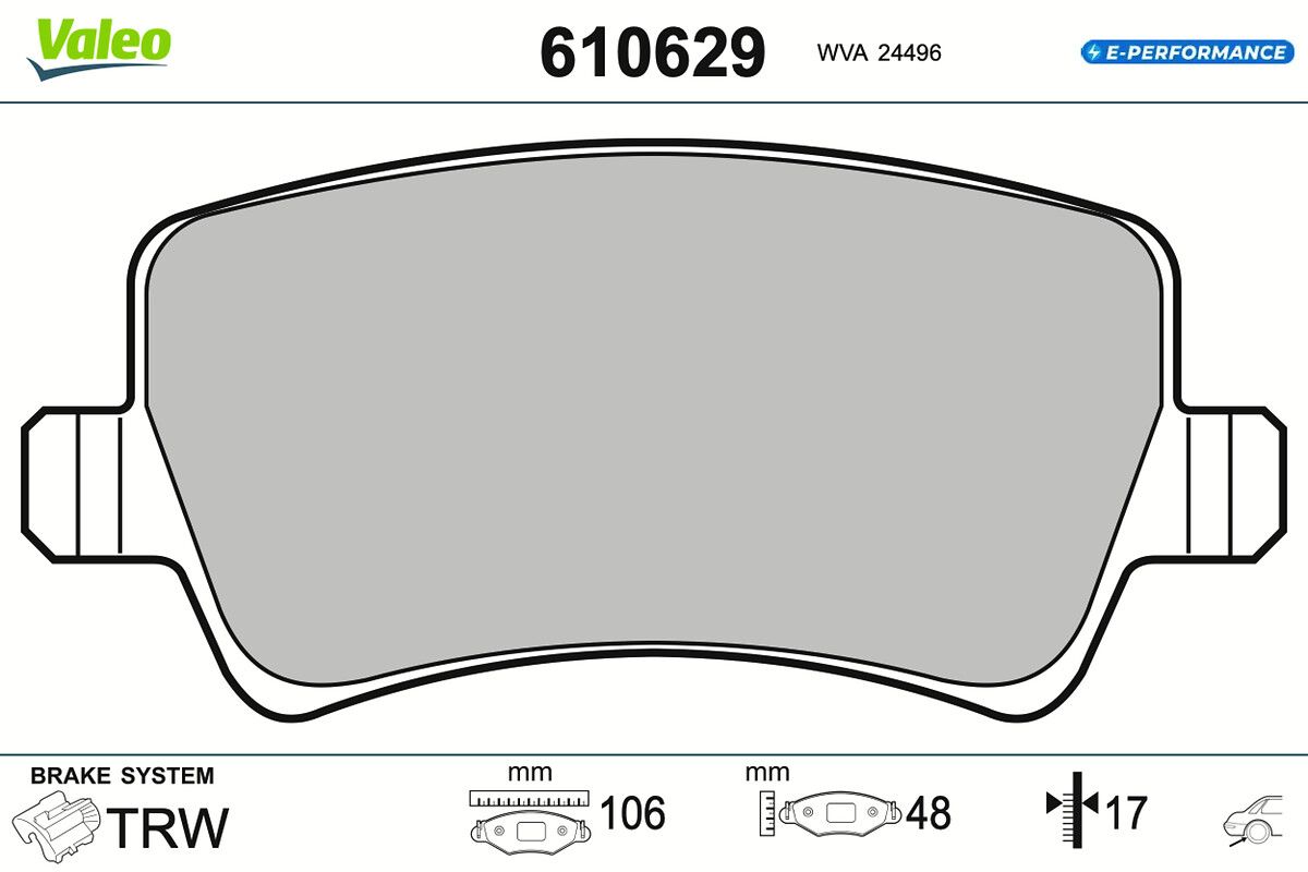 VALEO Bremsbelagsatz, Scheibenbremse 610629 E-PERFORMANCE