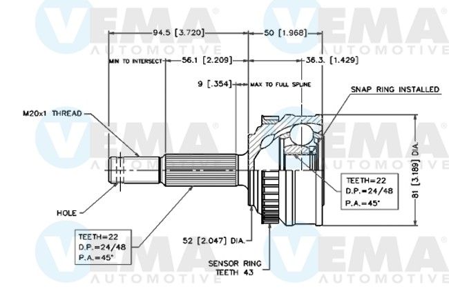 VEMA Gelenksatz, Antriebswelle 18226