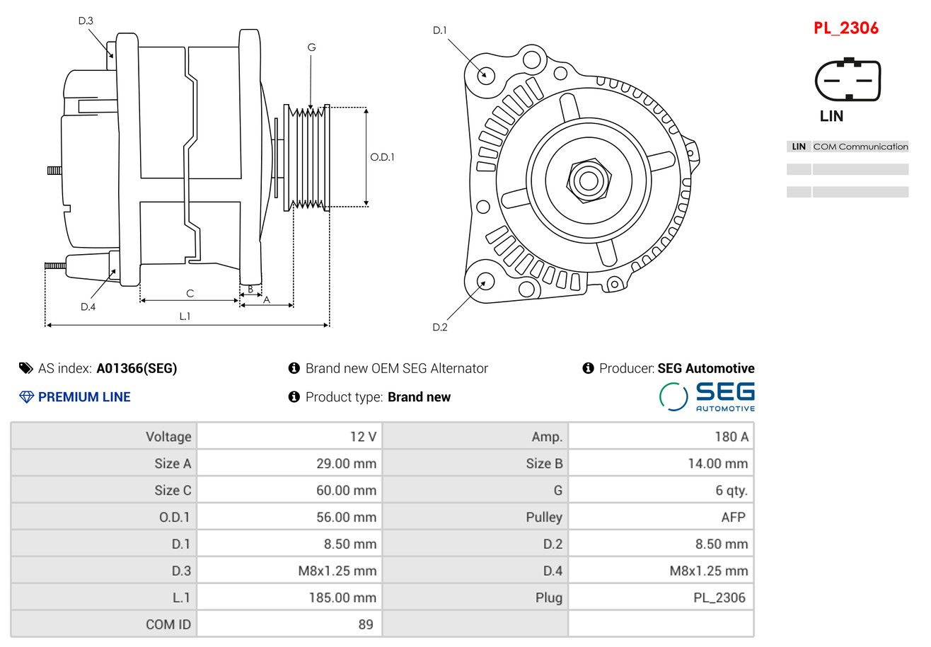 AS-PL Generator A01366(SEG) SEG Automotive